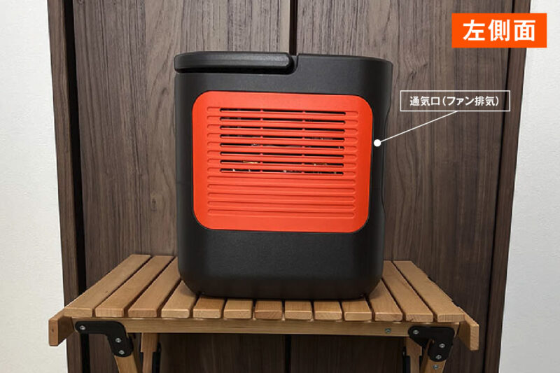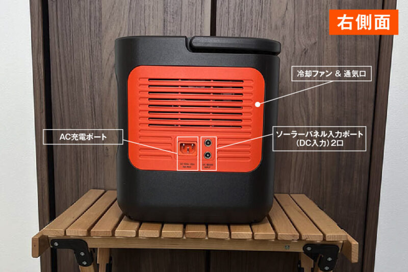 大容量の電力を出力すると内部が熱を持つため、自動でファンが回り温度を調整。