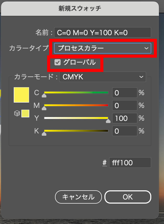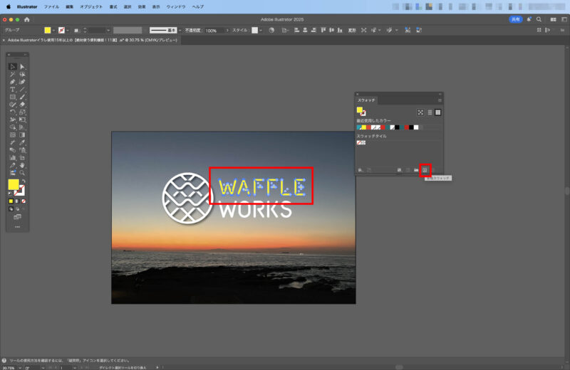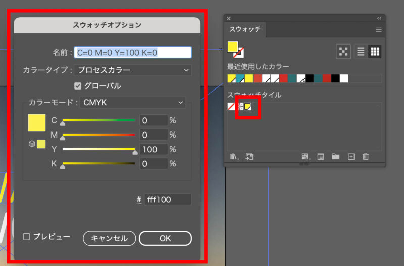 オブジェクトの色を設定した状態で「新規スウォッチ」をクリック