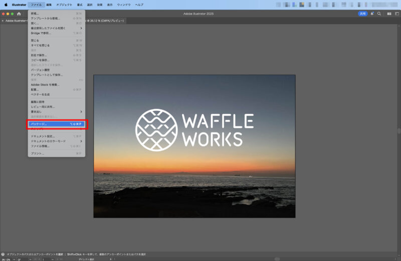 [ファイル] → [パッケージ]を選択