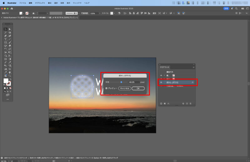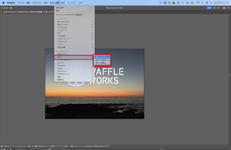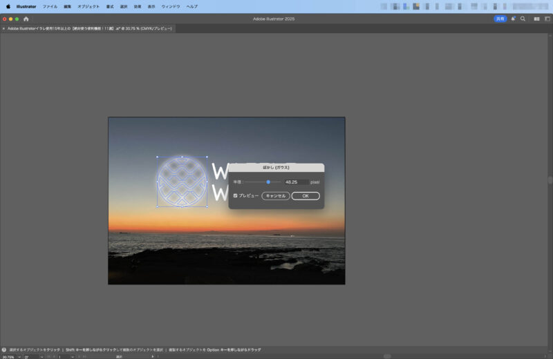 ぼかし(ガウス) | 自然なぼかし効果を付与 | [効果] → [ぼかし] → [ガウス] | 奥行き・立体感を演出できる |