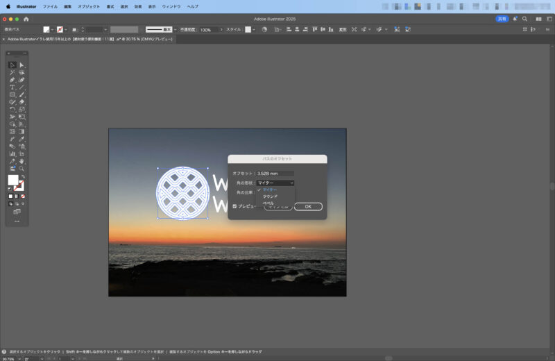 パスのオフセット | パスの外側/内側に等間隔の線を作成 | [オブジェクト] → [パス] → [パスのオフセット] | 枠線や装飾を簡単に追加可能 |